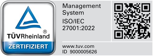 Wir geben Ihren Informationen die Qualität und Sicherheit, die sie verdienen. Durch unsere international anerkannte TÜV Zertifizierung nach ISO 27001:2013 sind Ihre Daten jederzeit gesichert.